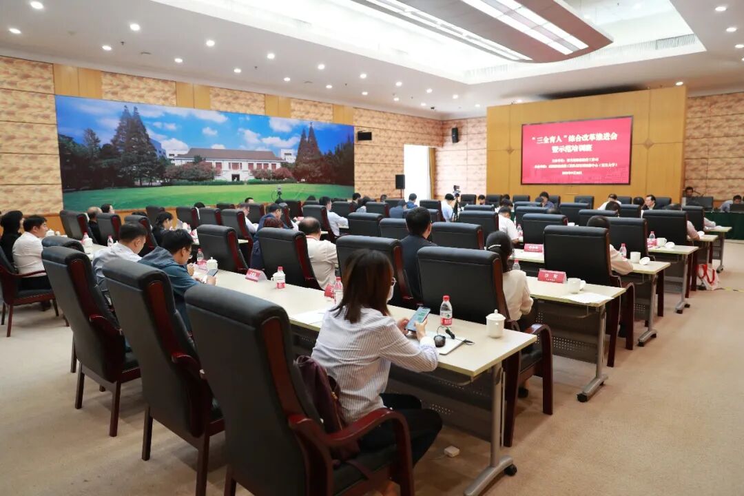 海南大学党委书记武耀廷介绍了海南大学入选试点高校以来,不折不扣落实中央和省委关于加强高校思想政治工作的决策部署,构建了多维协同、内生驱动的一体化育人模式,努力推动形成“大思政”工作格局,育人主体队伍显著加强,育人成效丰硕,初步形成了深化“三全育人”的改革成果与经验。学校将继续坚持经验总结和示范推广、思政课程和课程思政、重点突破和一体推进相结合,更好地联结育人力量、激活育人主体、抓好育人对象、统筹育人要素,着力培养与海南自贸港建设想适应的社会主义建设者和接班人。